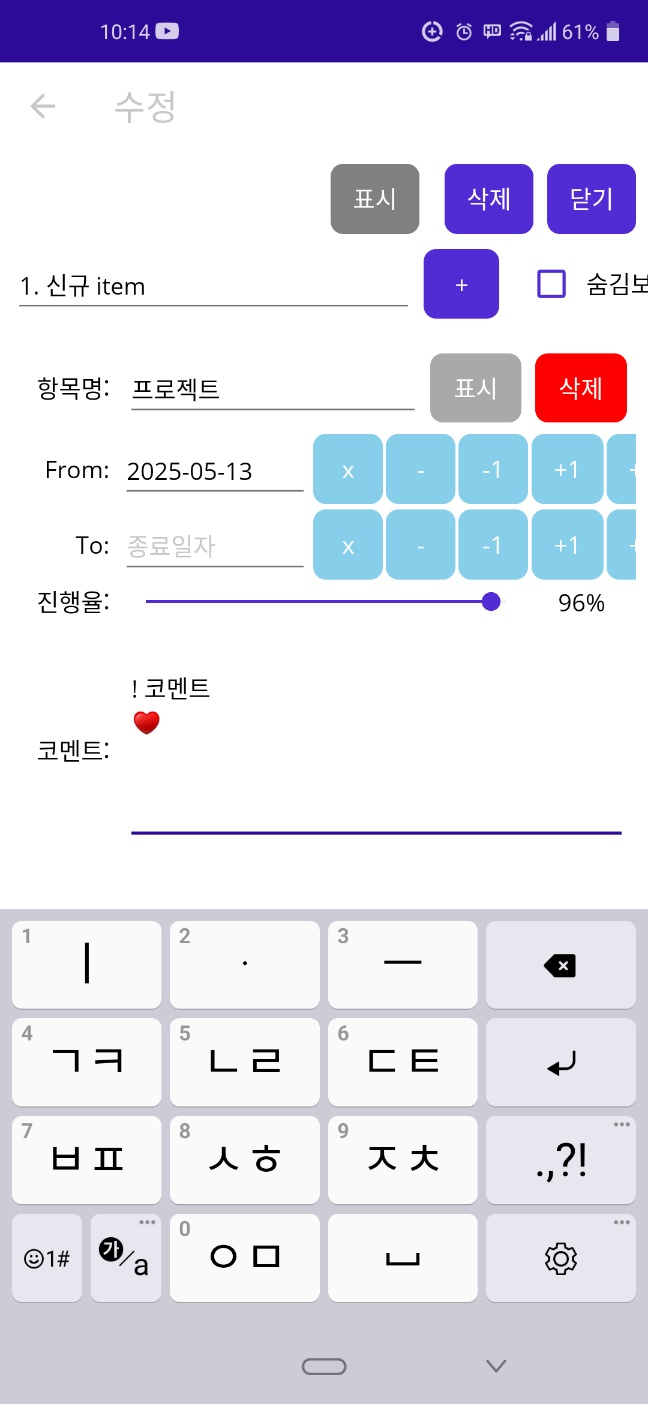 그리고 [숨김] 기능도 추가했다. 삭제는 아니고 숨길 수 있도록...