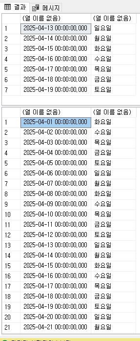 04-13일요일을 설정하고 주간 정보를 보면 월요일 부터 나와야 할게 14일부터 보여져서 수정.( 04-23 )